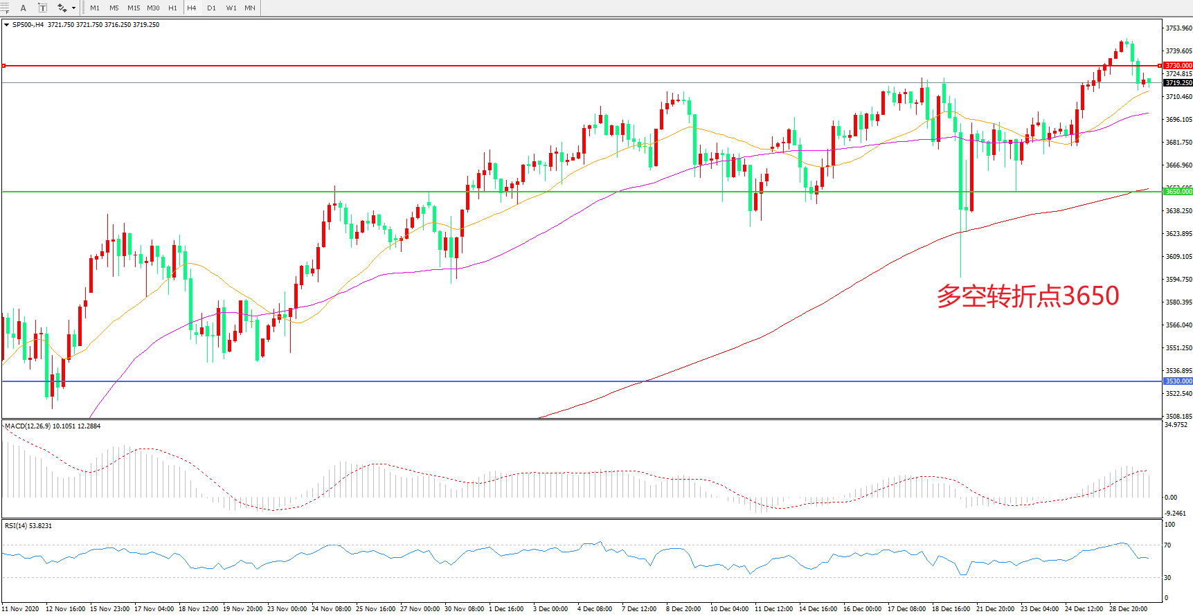 多空转折点:3650.00