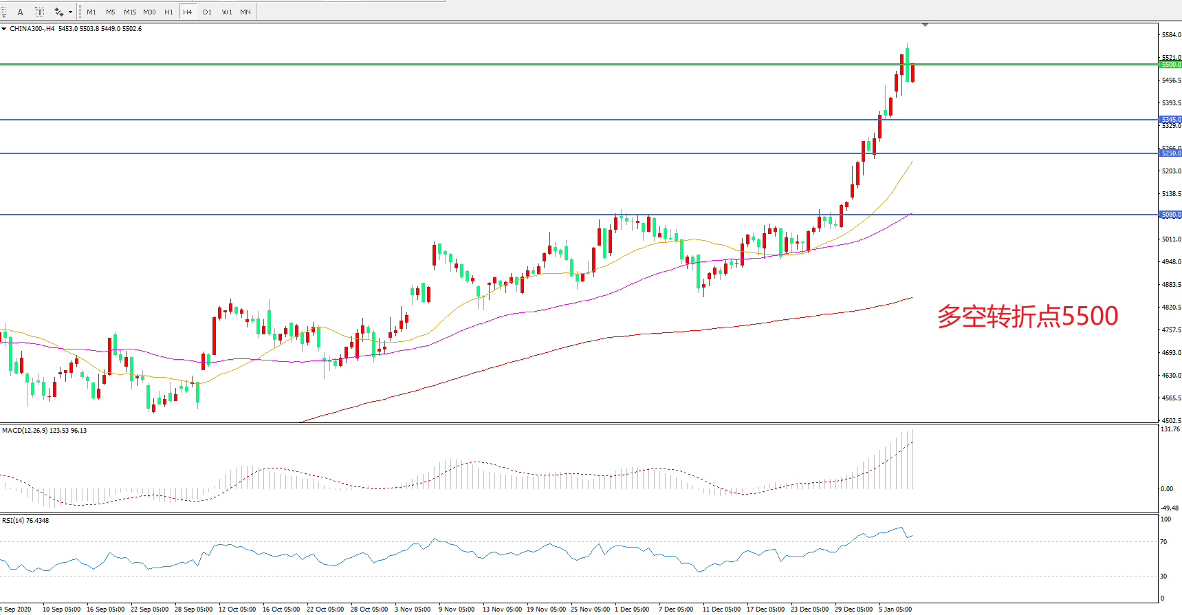 迈入2021年后,A股延续过去两年的强势,喜获“开门红”,为全年走势开了个好头!而沪深两市日成交再度站上万亿元大关,更给市场平添“量价齐升”的好兆头。沪深300指数虽然周五出现回调,但整周来看表现依旧强势,最终收报5500.00点。