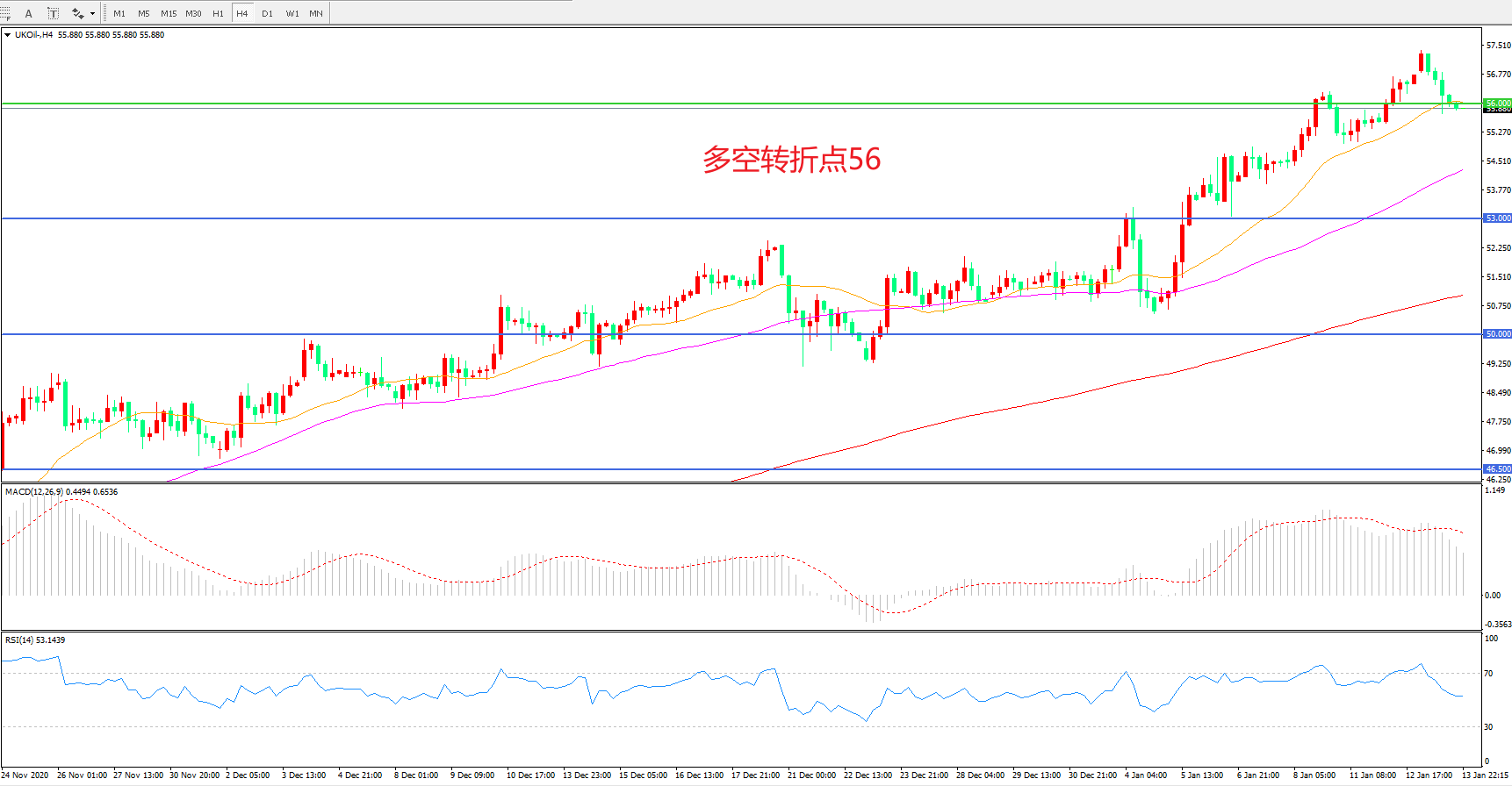 交易策略:  在56.00之上看涨,目标60.00      64.00