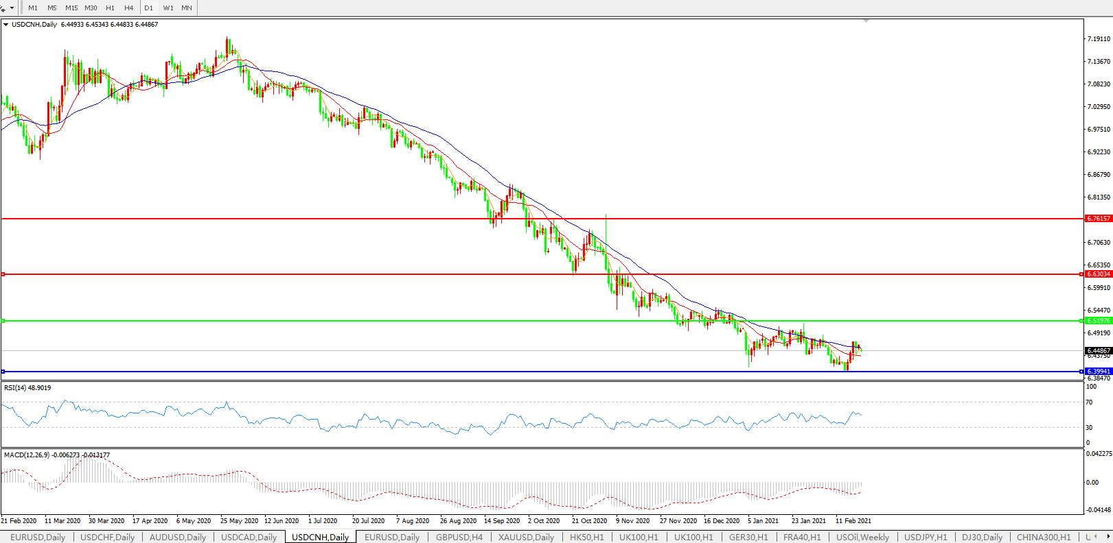 交易策略: 在6.5200之下,看跌,目标价位为6.4000,然后为6.2000。