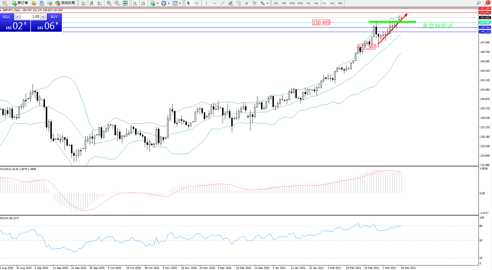 多空转折点:150.405