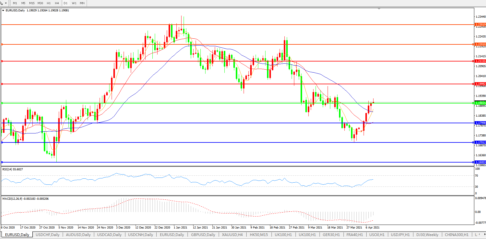 备选策略:1.1900上方看涨,目标1.2000、1.2100