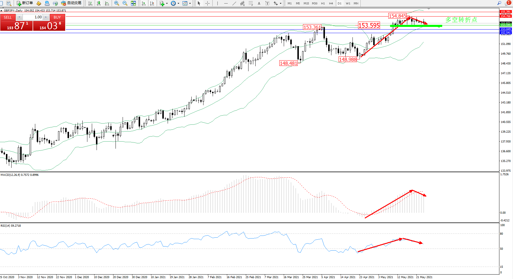 多空转折点:153.595