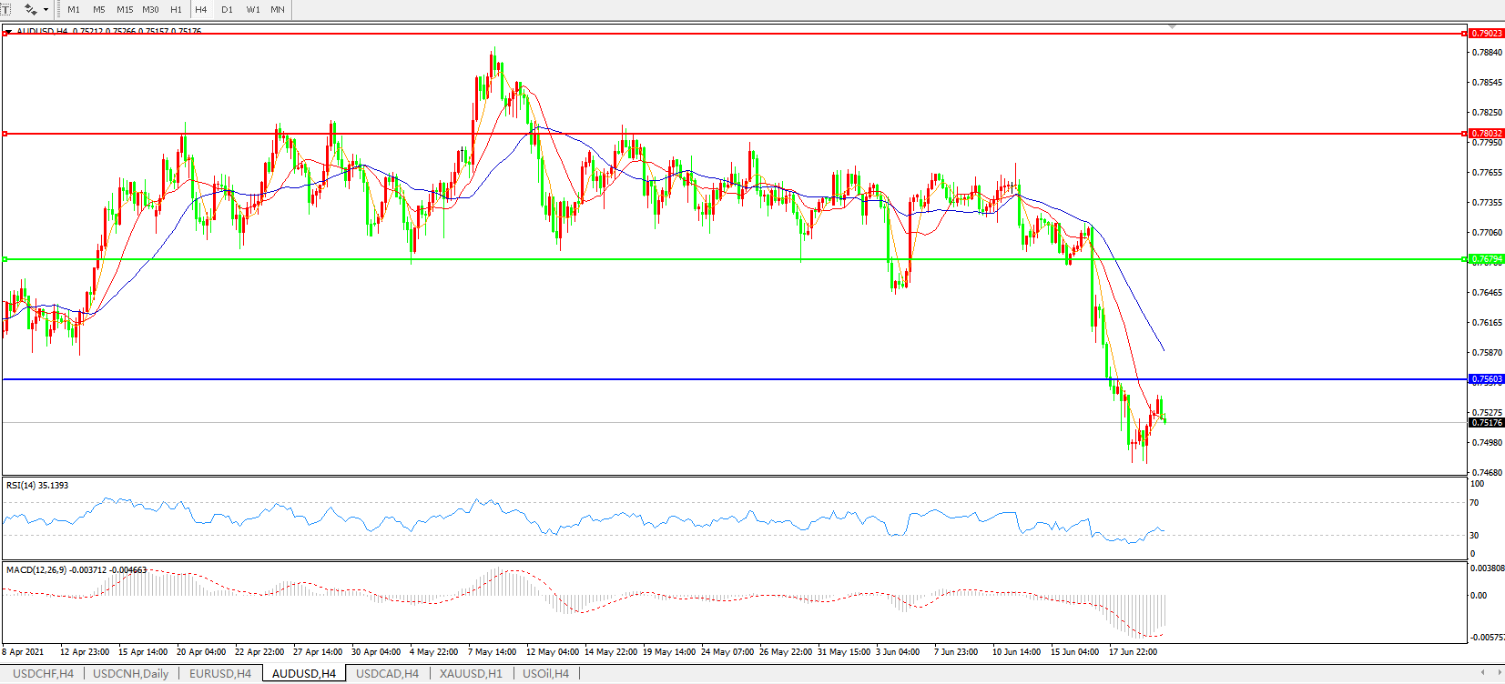 AUDUSD 4小时图: