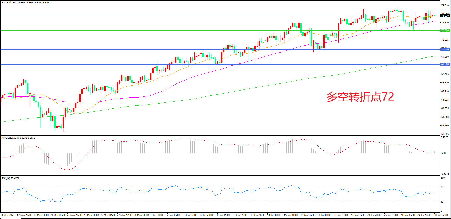 多空转折点:72.00