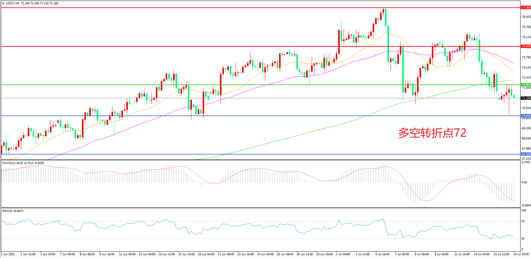 多空转折点:72.00