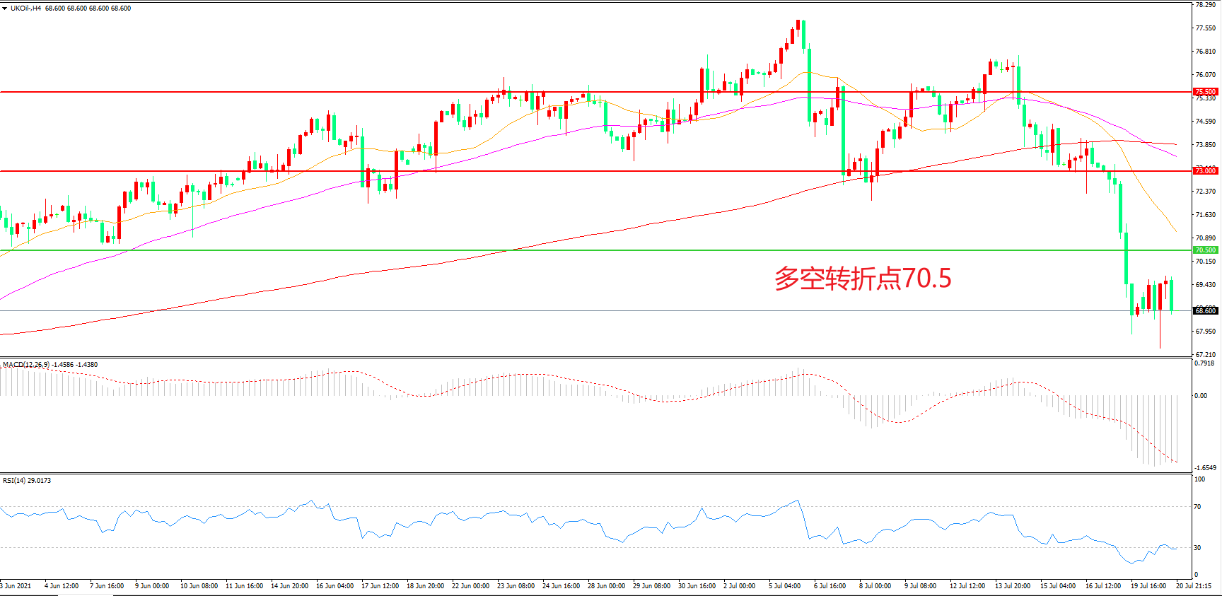 交易策略:在70.50之下看跌,目标66.50 62.00