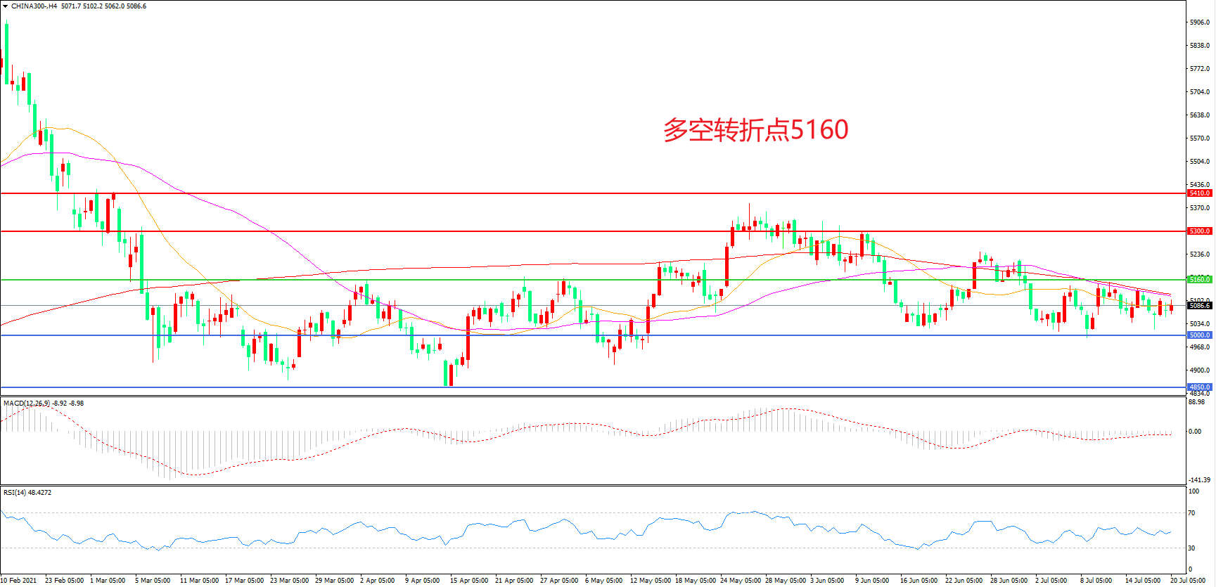 多空转折点:5160.00
