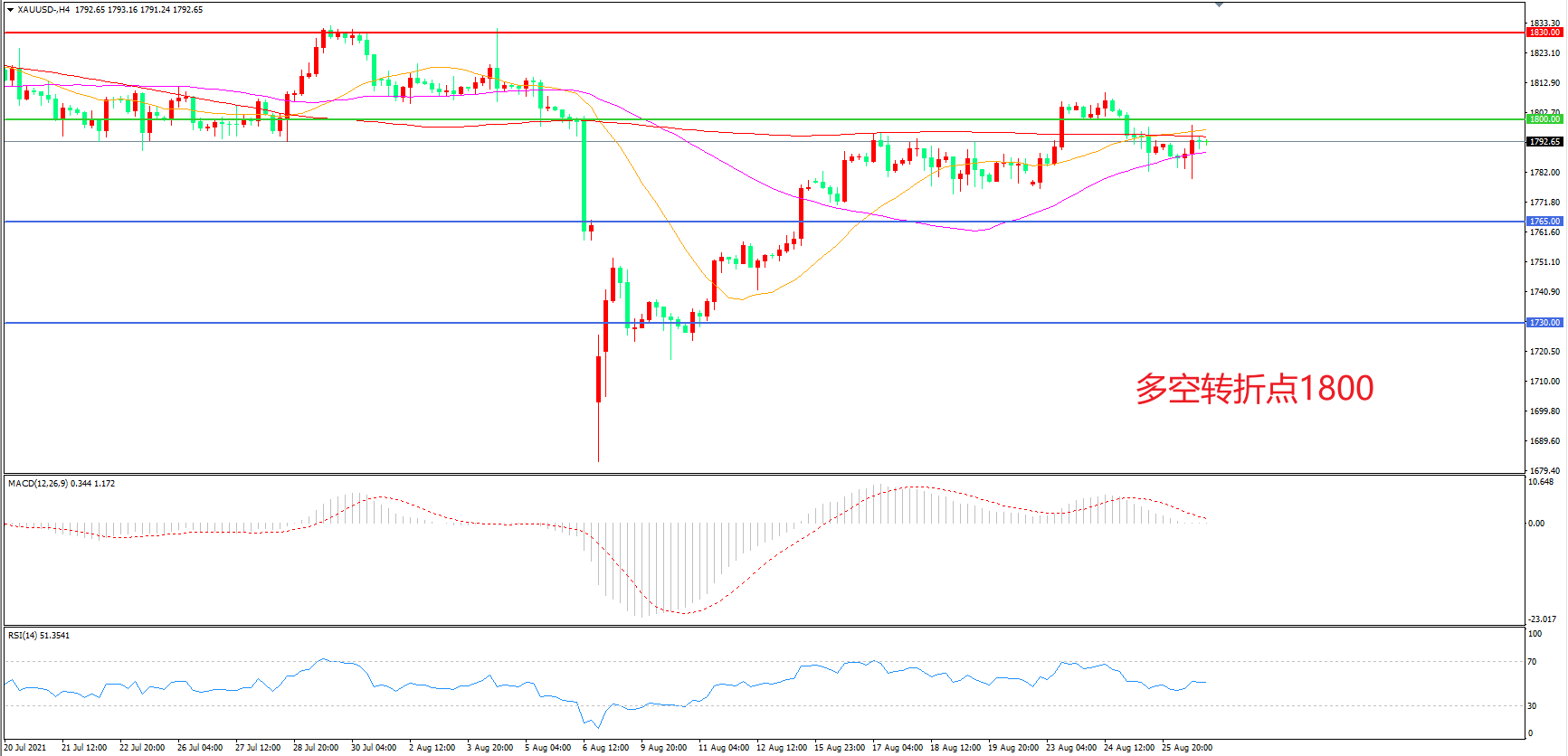 多空转折点:1800.00