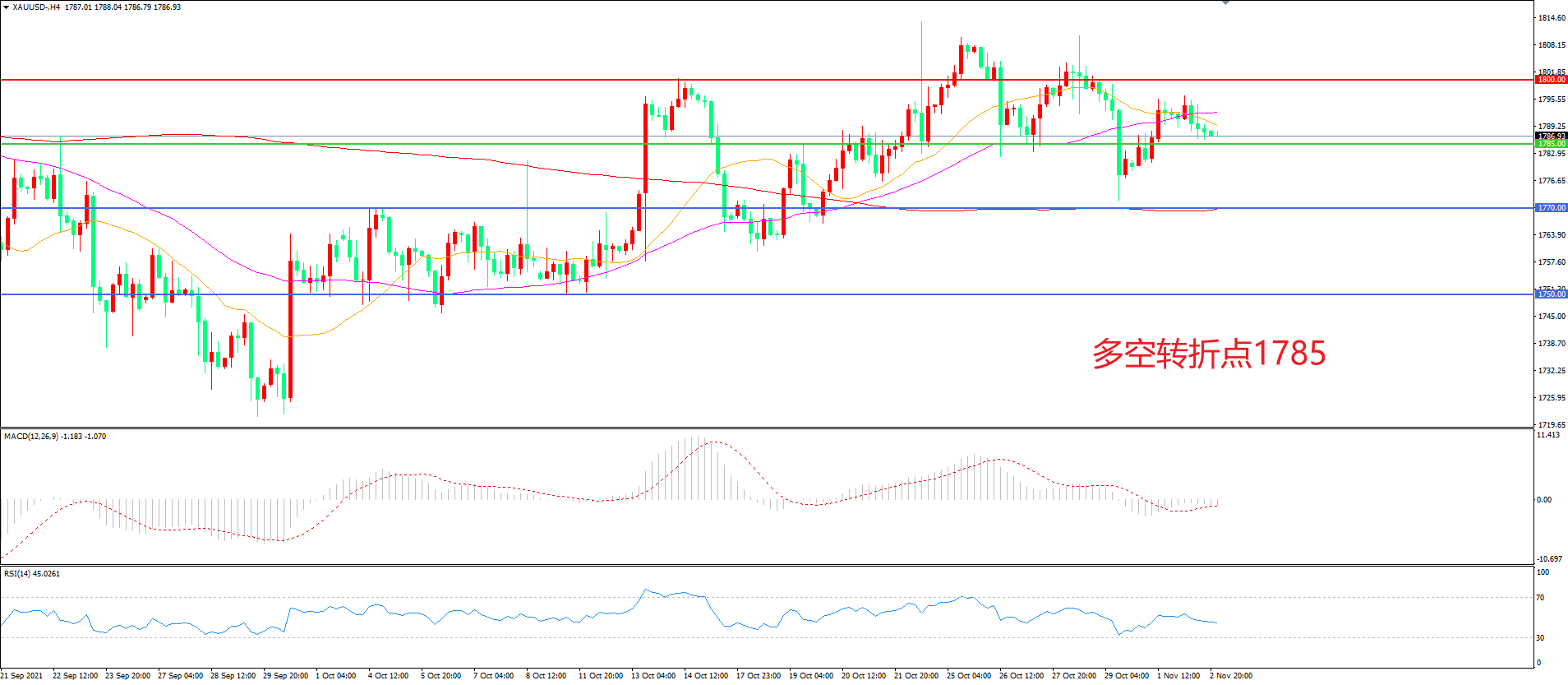 周二(11月2日),在通胀压力不断增加以及对经济增长放缓的担忧之际,所以投资者都在等待美联储本周政策会议结果,观望情绪导致金价小幅回落,收报1787.01美元/盎司。今晚20点15分,市场将迎来有“小非农”之称的ADP就业数据,目前机构预期增加40万人,在非农与议息会议来临前,ADP将为本周的“超级行情”拉开序幕。