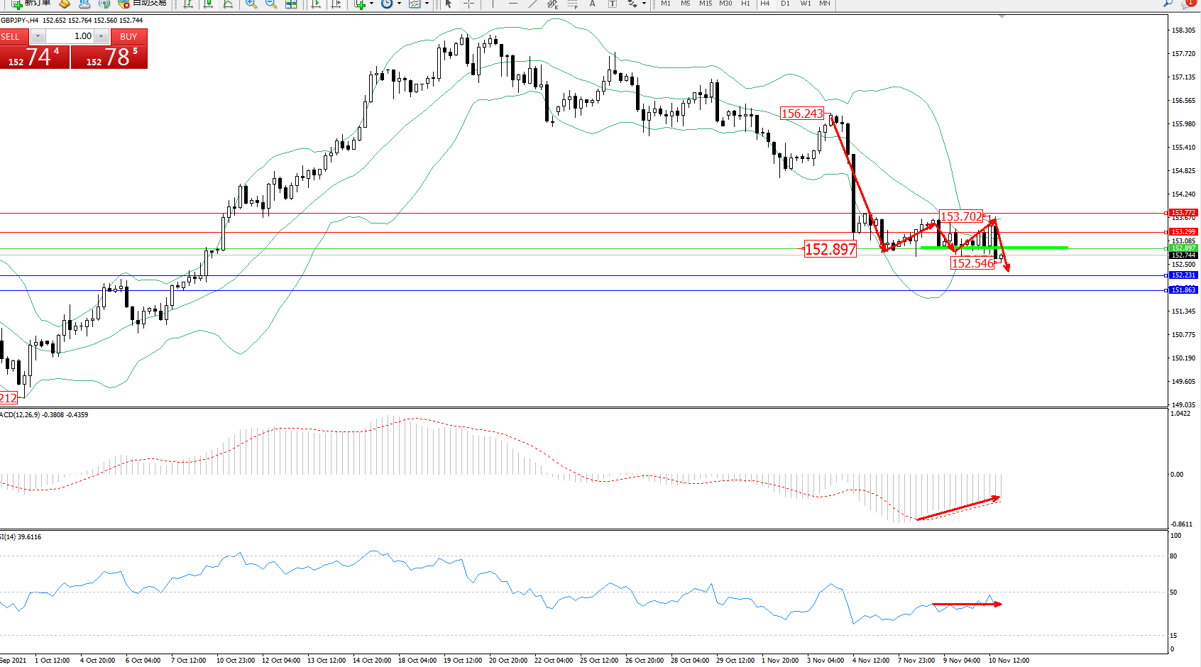 交易策略:152.897下方看跌,目标152.231、151.863