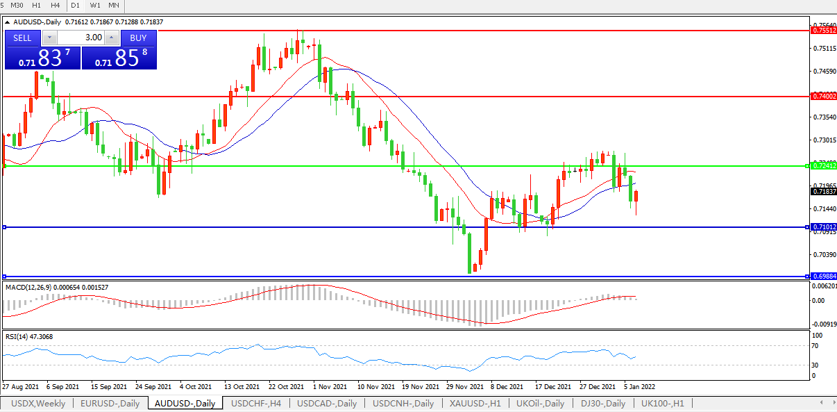 交易策略:0.7240下方看跌,目标0.7100、0.6980