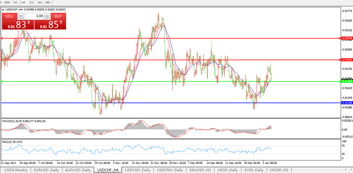 交易策略:0.9180上方看涨,目标0.9270、0.9370