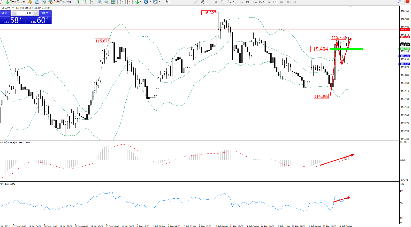 交易策略:115.484上方看涨,目标115.758、115.931
