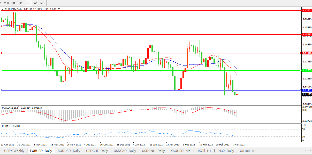 交易策略:1.1280下方看跌,目标1.1140、1.0600