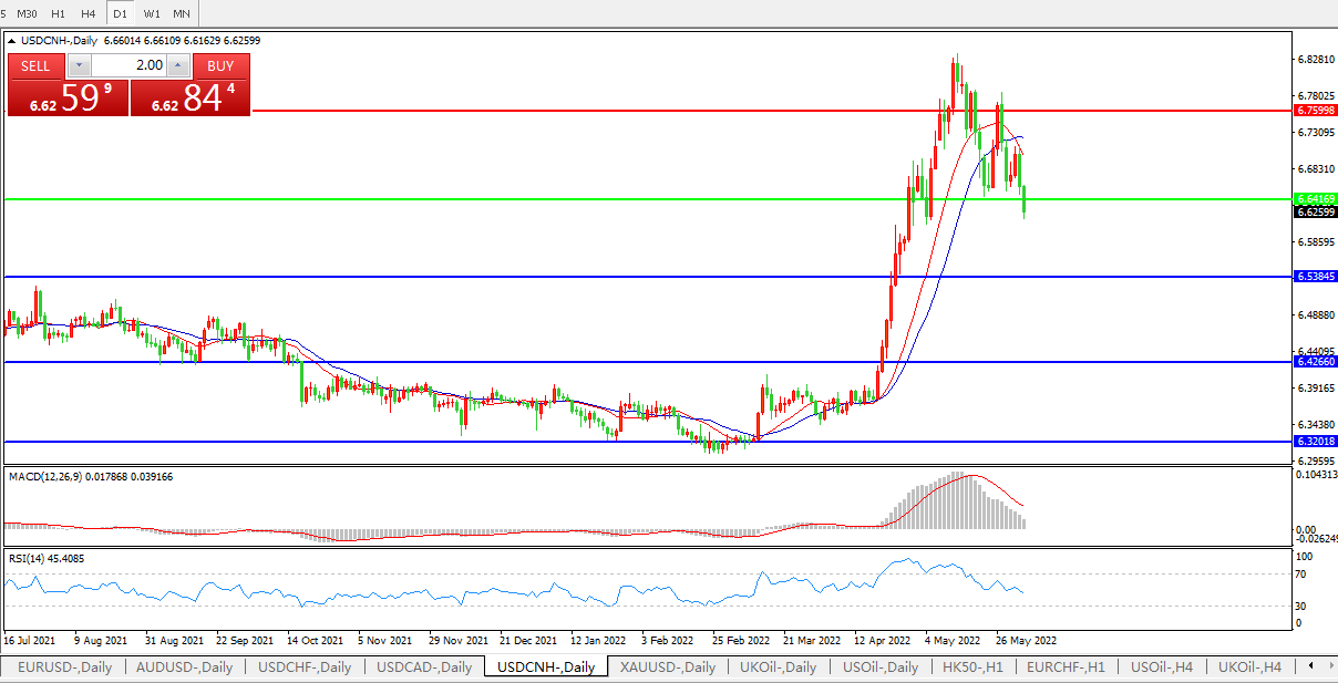 备选策略:在6.6416之上,看涨,目标价位为6.7600,然后为6.8870。