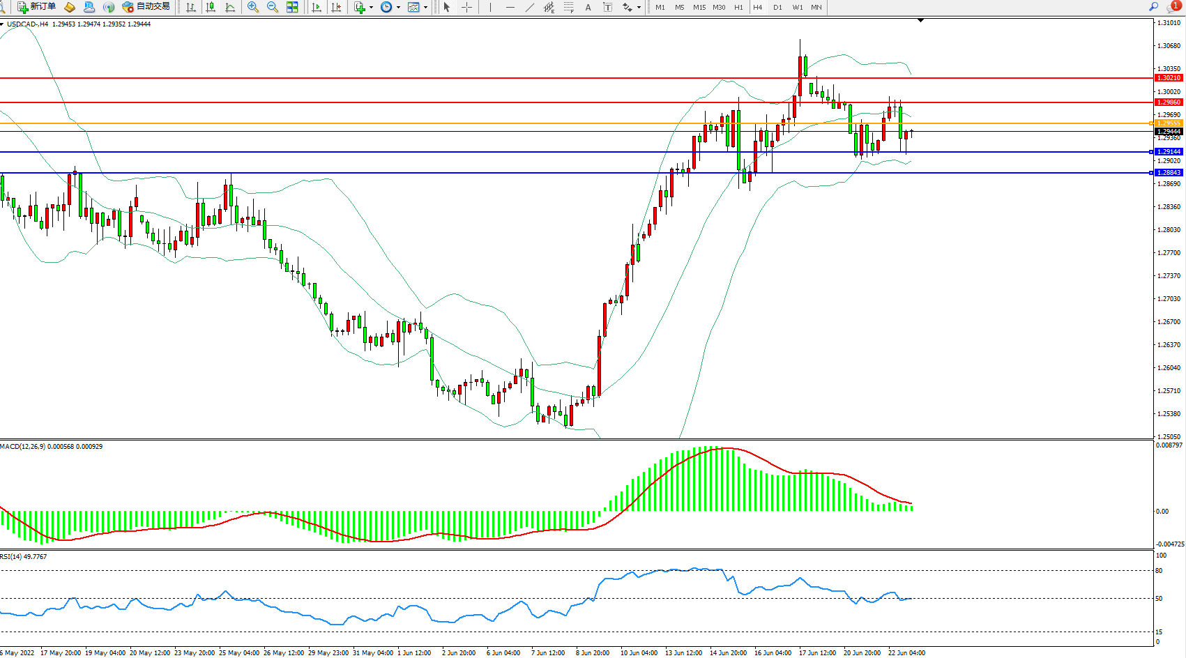 美元加元USDCAD——4小时K线图显示: