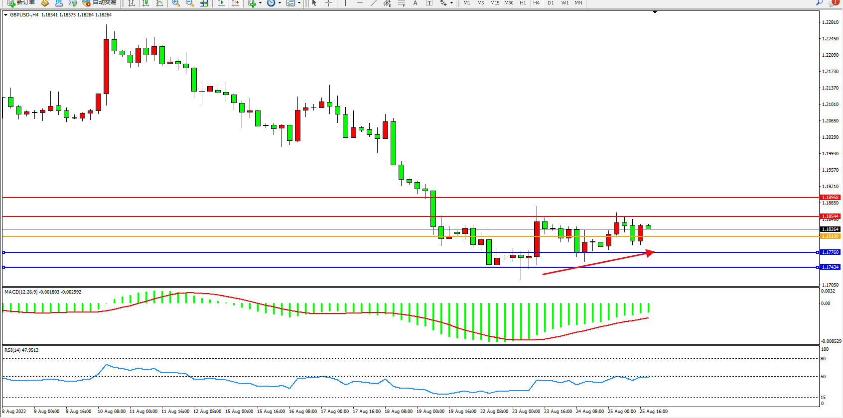 备选策略:1.18109下方看跌,目标1.17760、1.17434