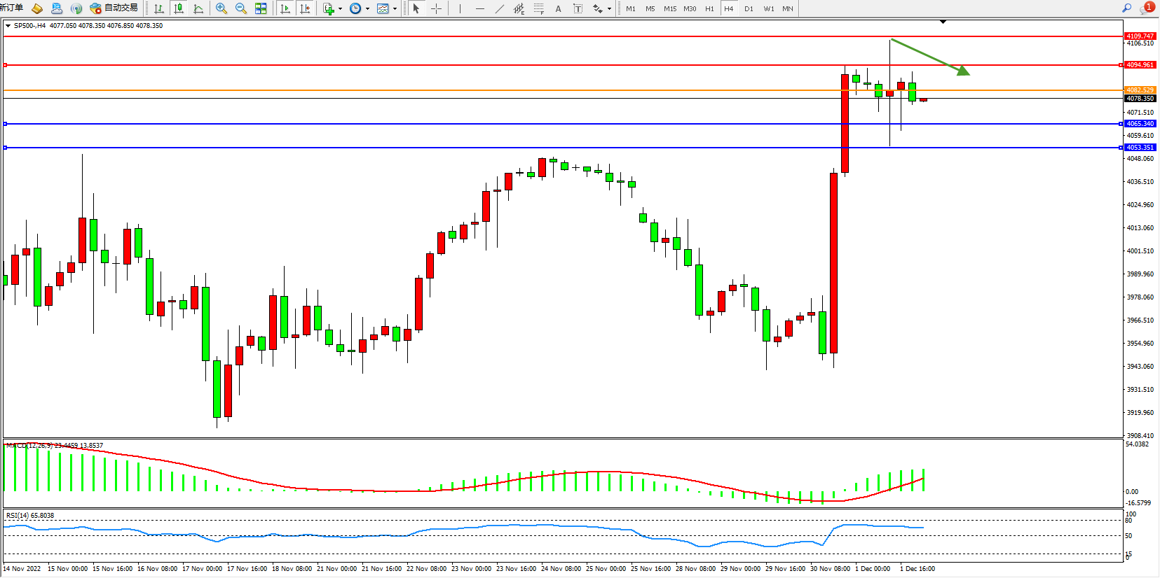 标普SP500——4小时K线图显示: