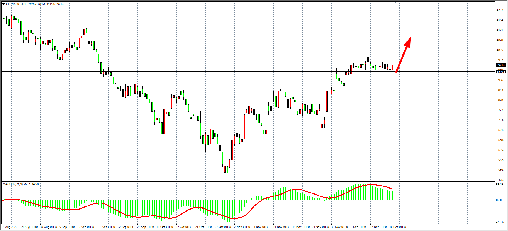 4小时图看,沪深3000依旧在3940点受支撑,MACD于零轴之上出现缩量状态,显示行情进入调整区间选择方向,当前支撑继续关注3940附近,上方压力则关注4010附近,有效突破4010将打开新一轮上行空间。