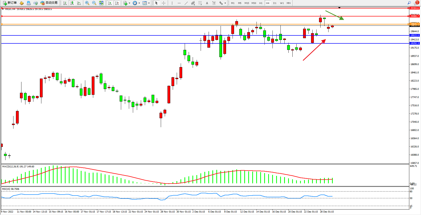 恒指HK50 4小时图