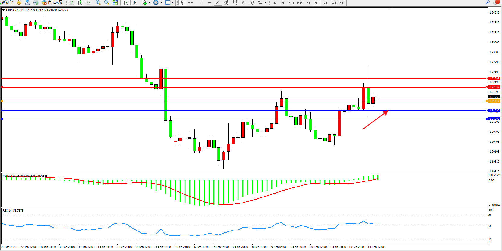 交易策略:1.21617上方看涨,目标1.22032、1.22293
