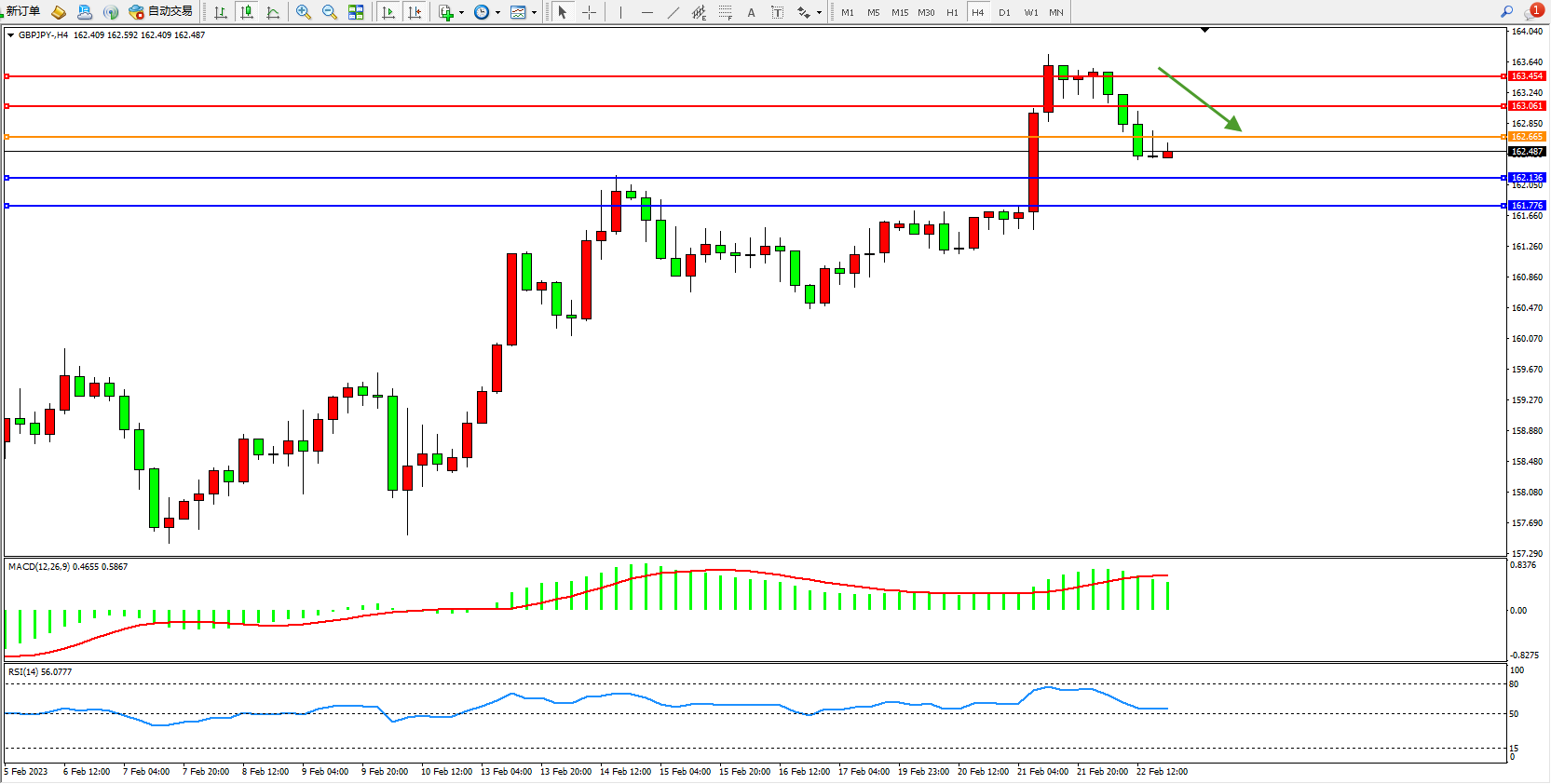 备选策略:162.665上方看涨,目标163.061、163.454