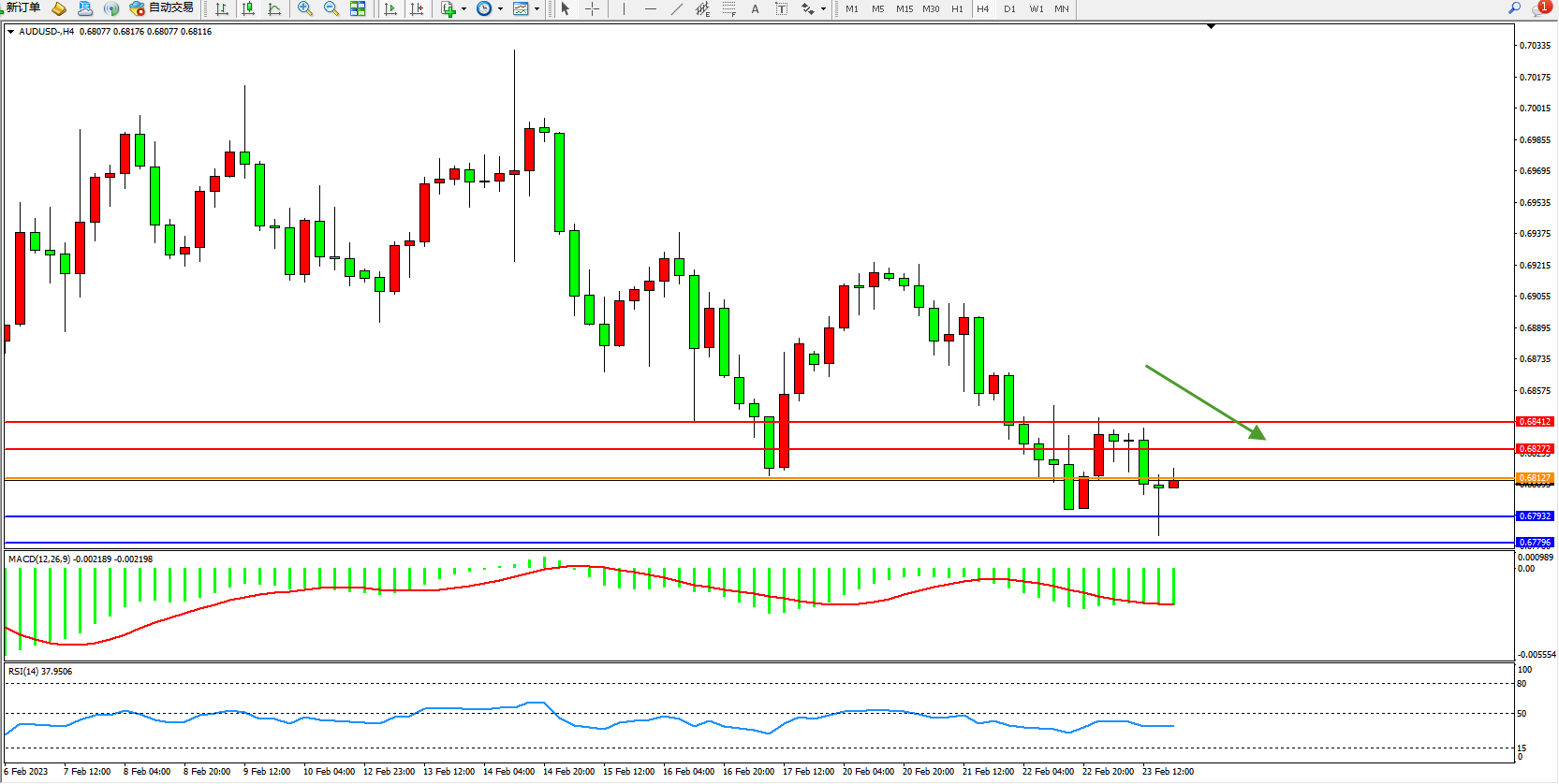 备选策略:0.68127上方看涨,目标0.68272、0.68412