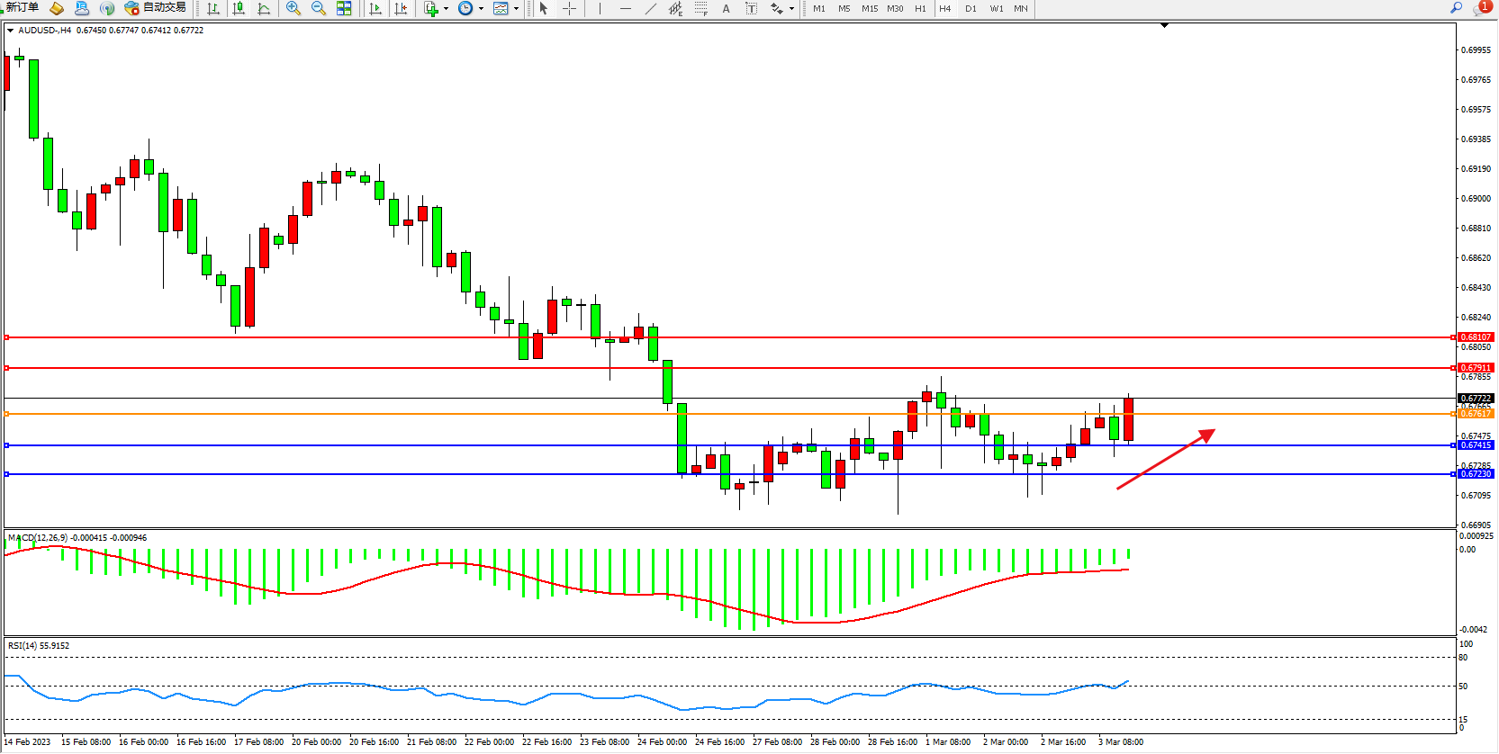交易策略:0.67617上方看涨,目标0.67911 0.68107