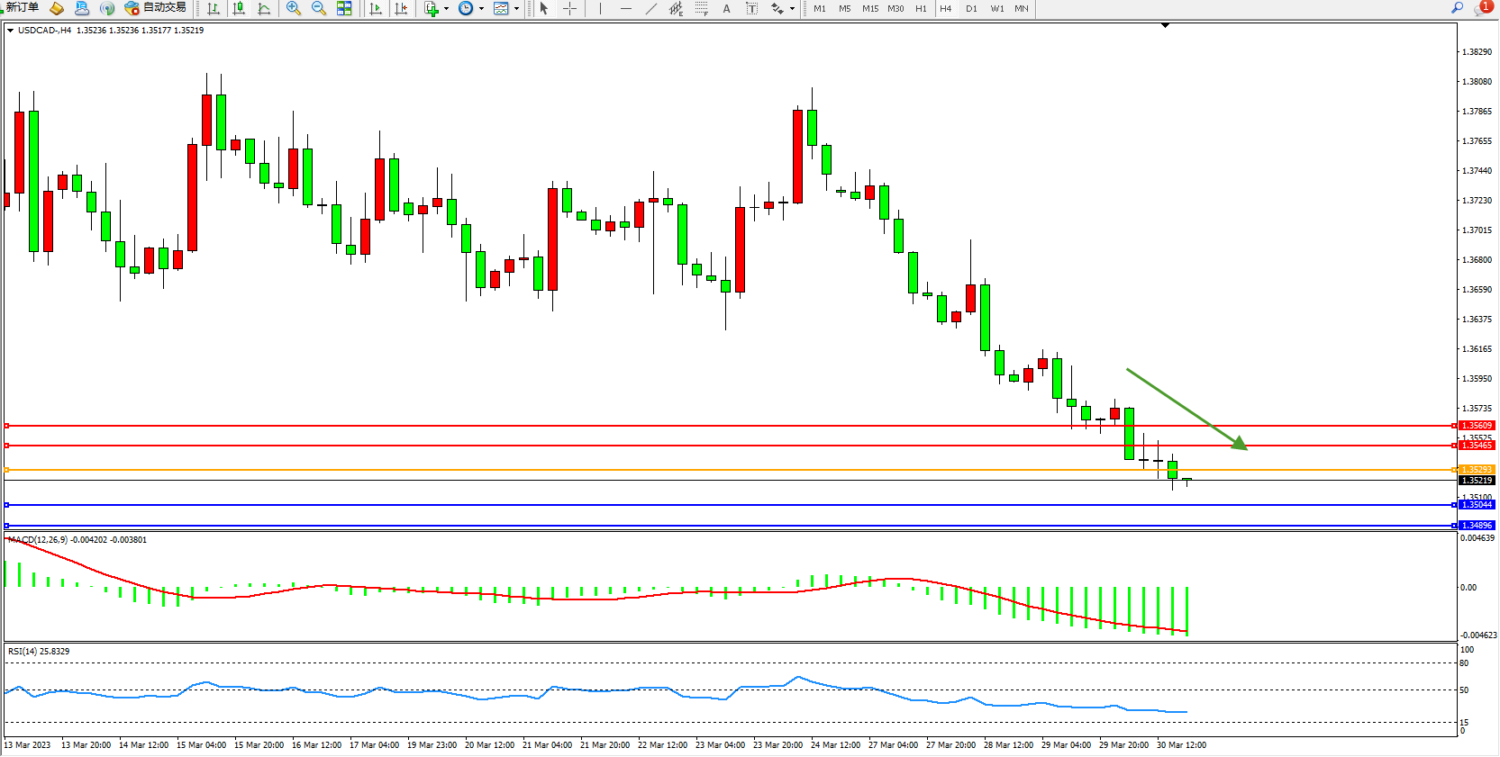 美元加元USDCAD——4小时K线图显示: