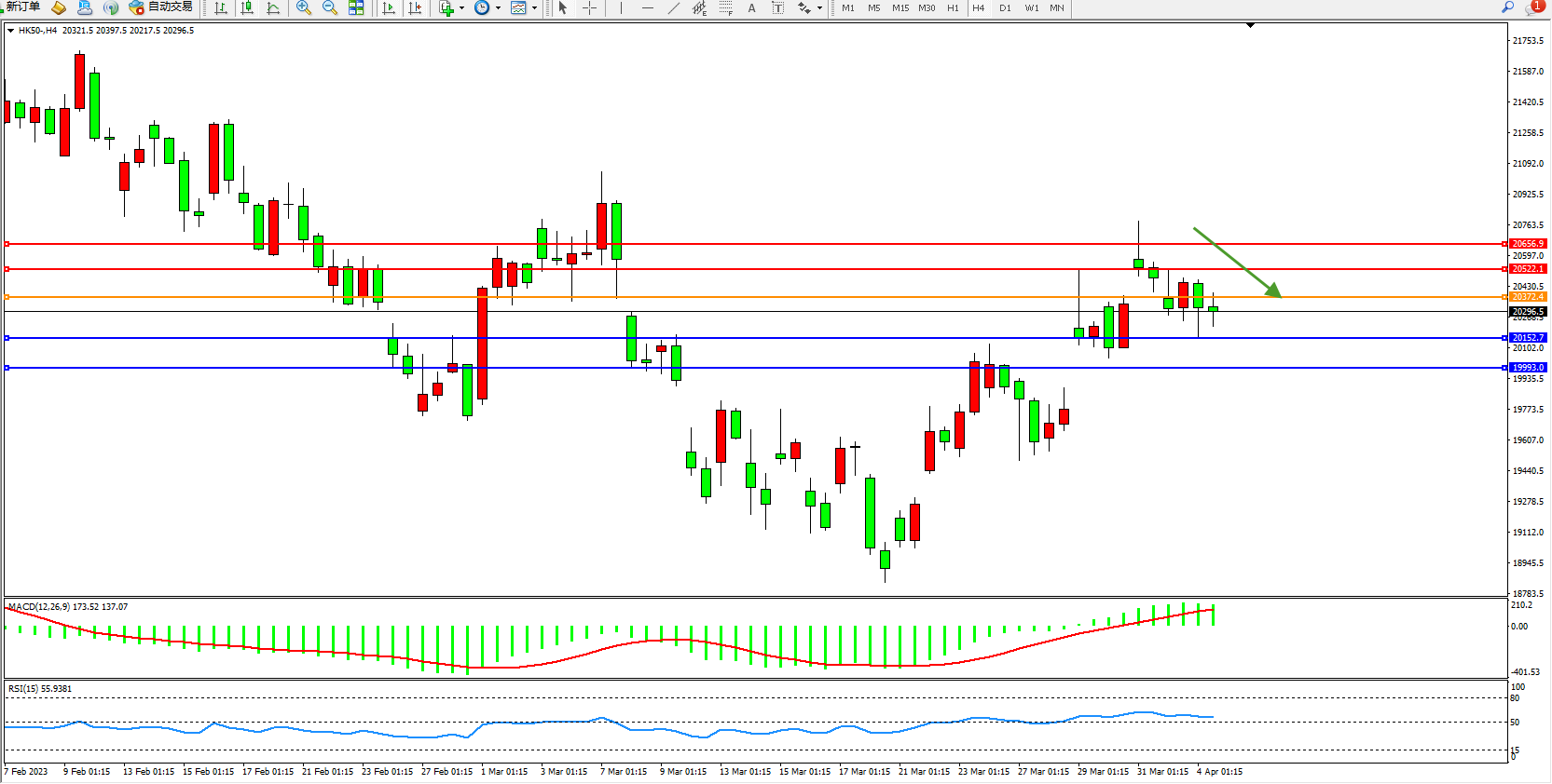 恒指HK50 4小时图