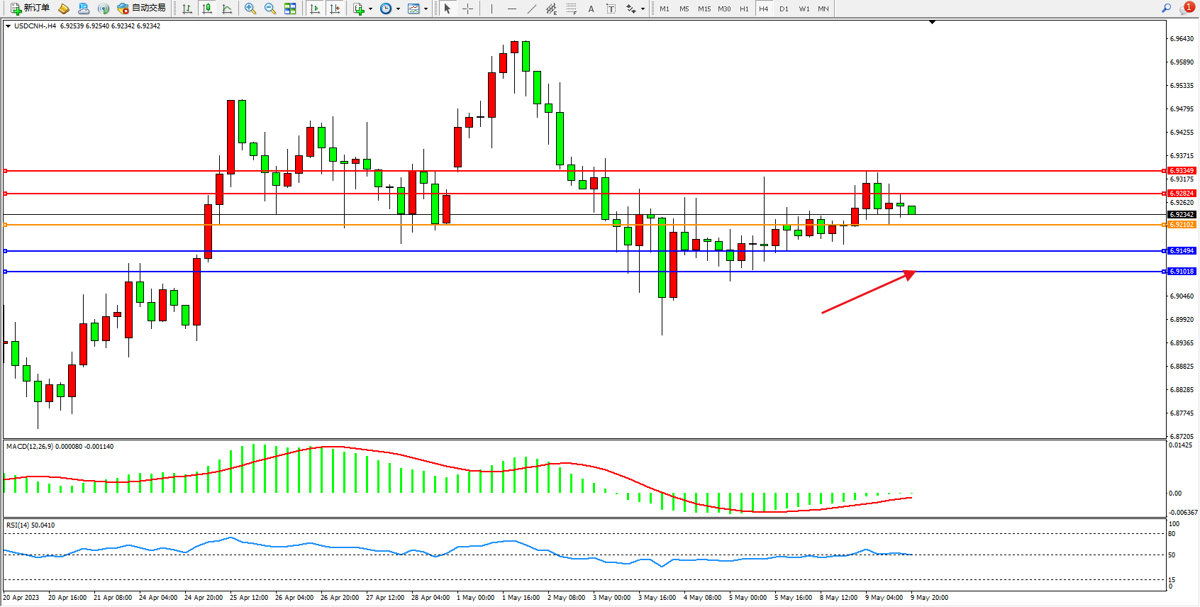 交易策略:6.92102上方看涨,目标6.92824  6.93349