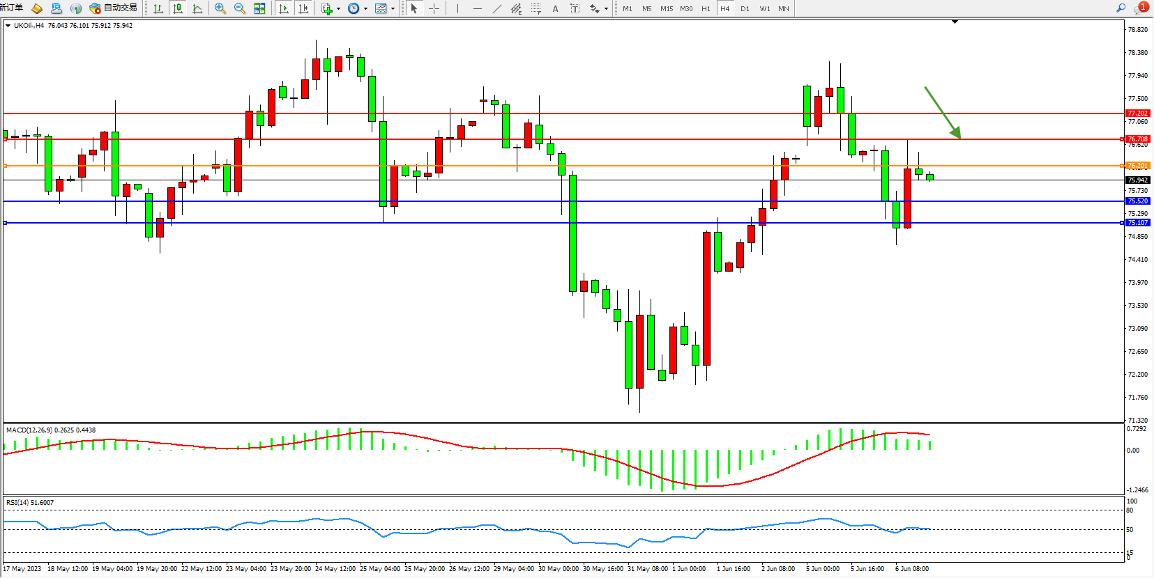 阻力位:76.708  77.202