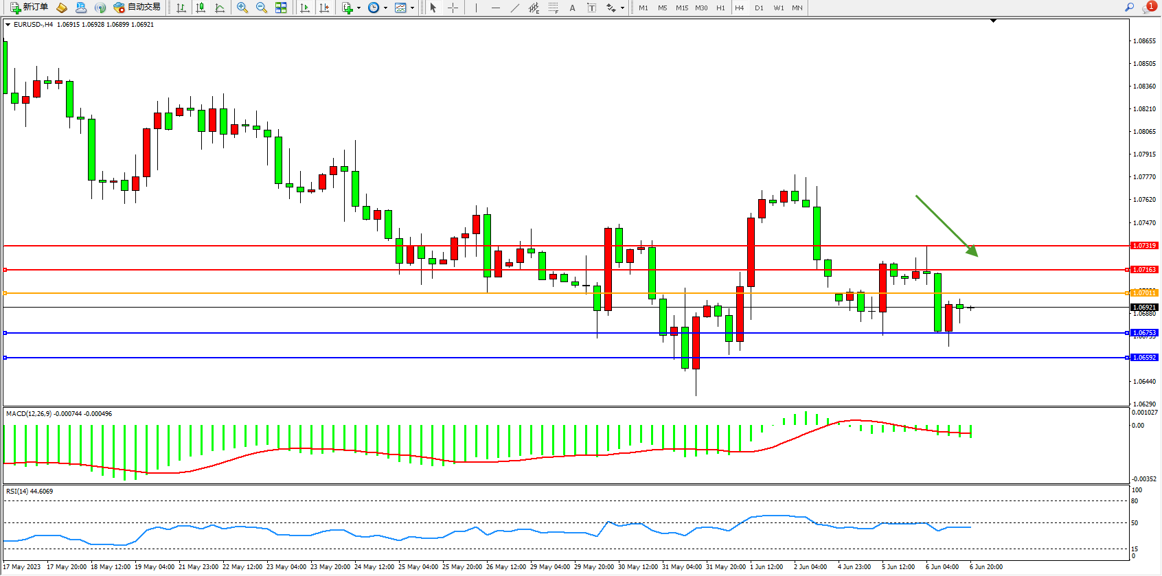 支撑位:1.06753 1.06592