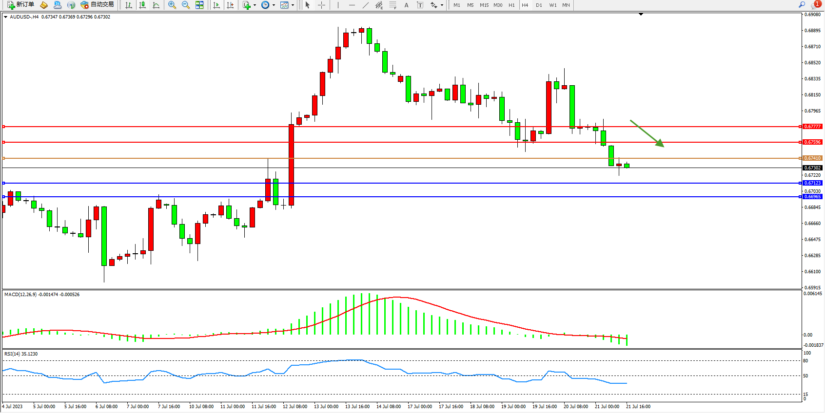 阻力位:0.67596 0.67777