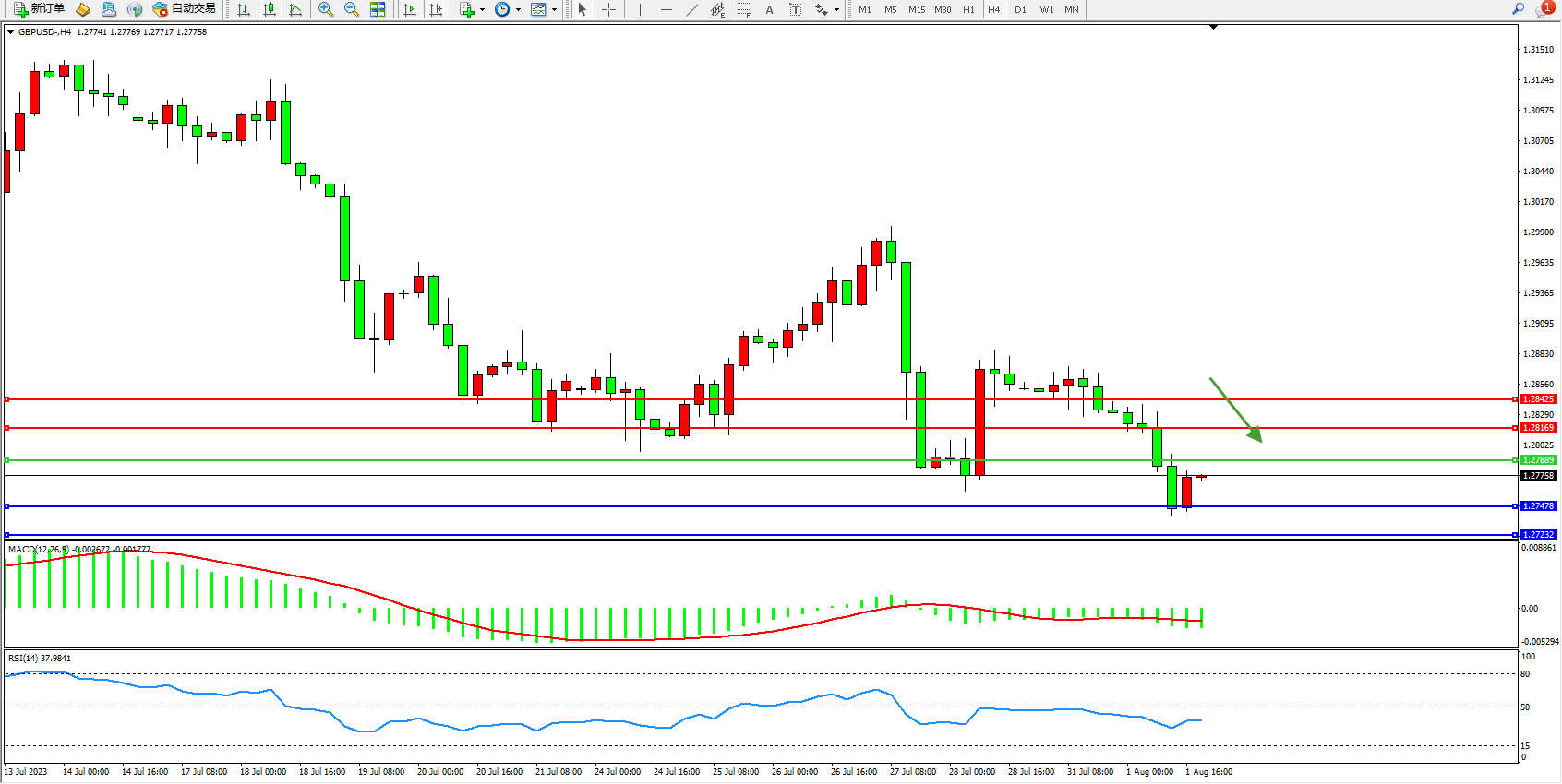 交易策略:1.27889下方看跌,目标1.27478 1.27232