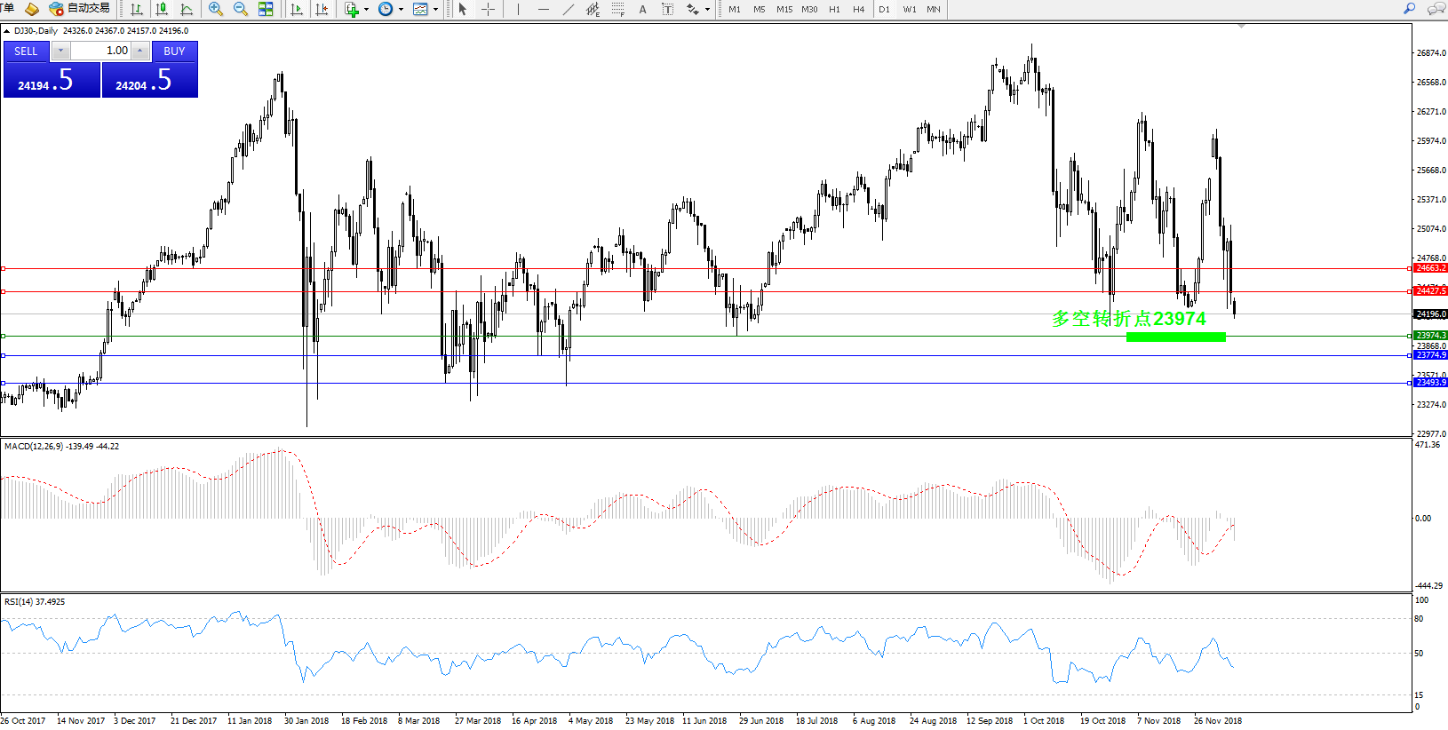 多空转折点:23974.3