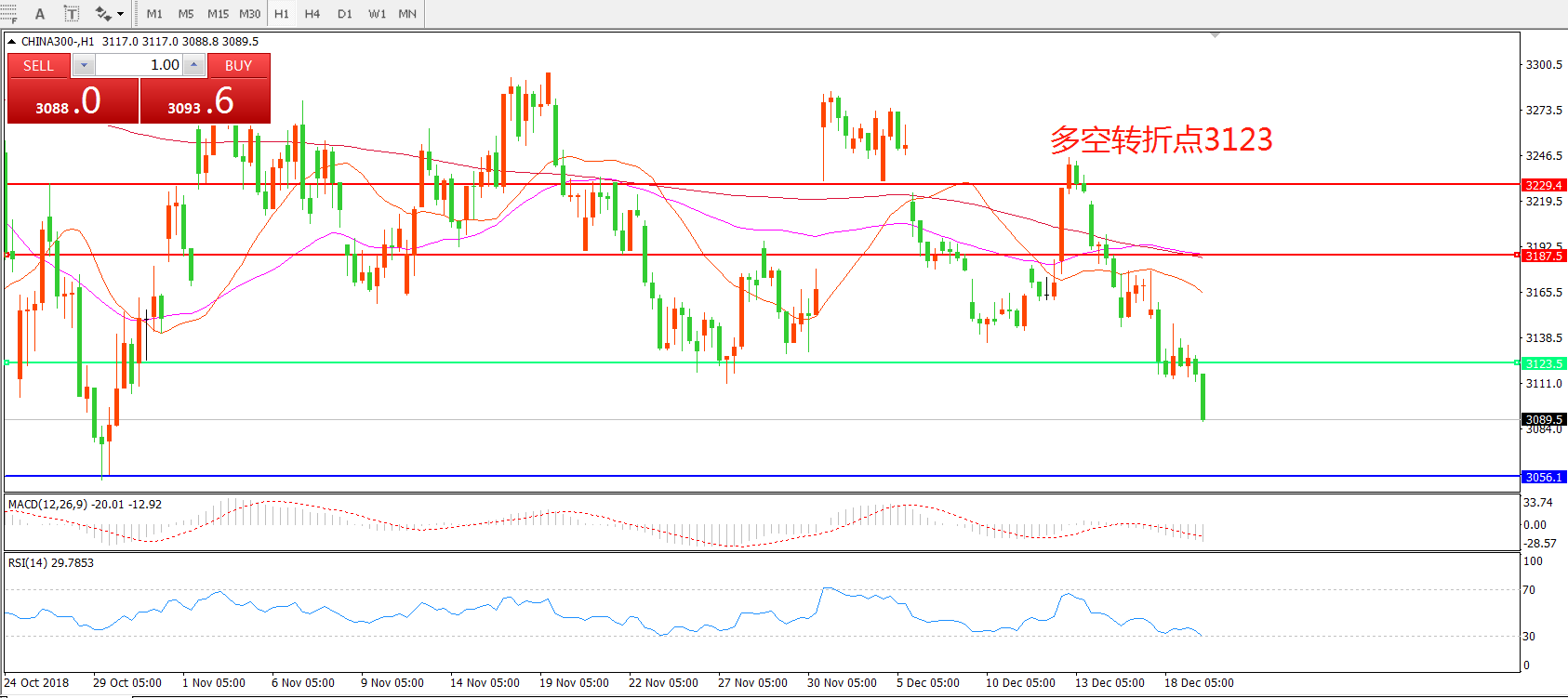 交易策略:在3123.00之下看跌,目标3056.0  3026.00