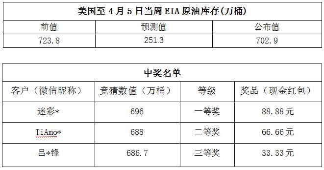 2019年4月第2期“EIA大竞猜活动的中奖结果已出,获奖信息如下: