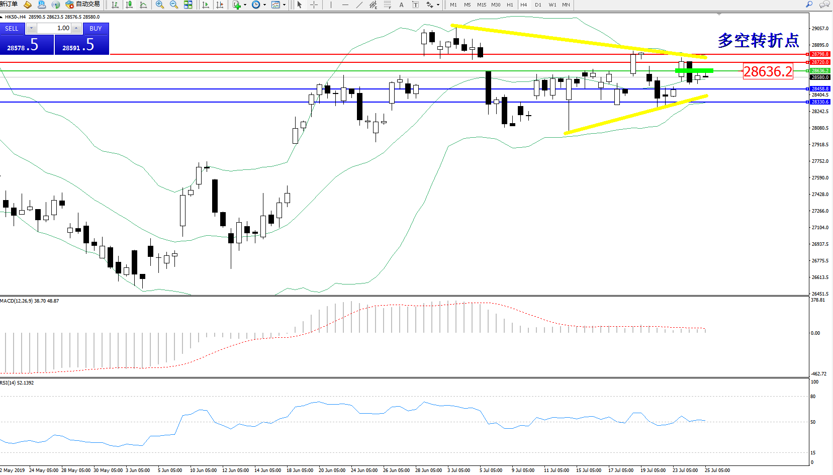 恒指HK50 ——4小时K线图显示:
