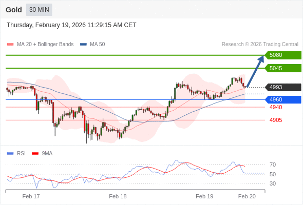 在 4960 之上,看涨,目标价位为 5045 ,然后为 5080 。