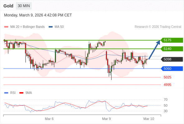 在 5060 之上,看涨,目标价位为 5140 ,然后为 5175 。