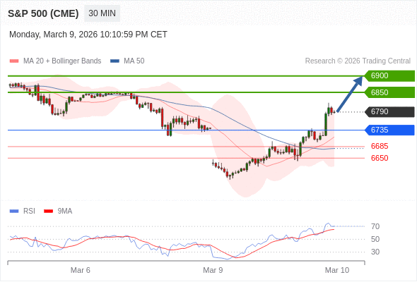 在 6735 之上,看涨,目标价位为 6850 ,然后为 6900 。