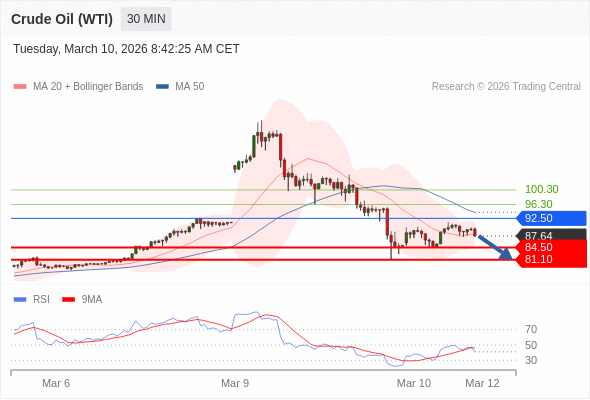 交易策略: 在 92.50 之下,看跌,目标价位为 84.50 ,然后为 81.10 。