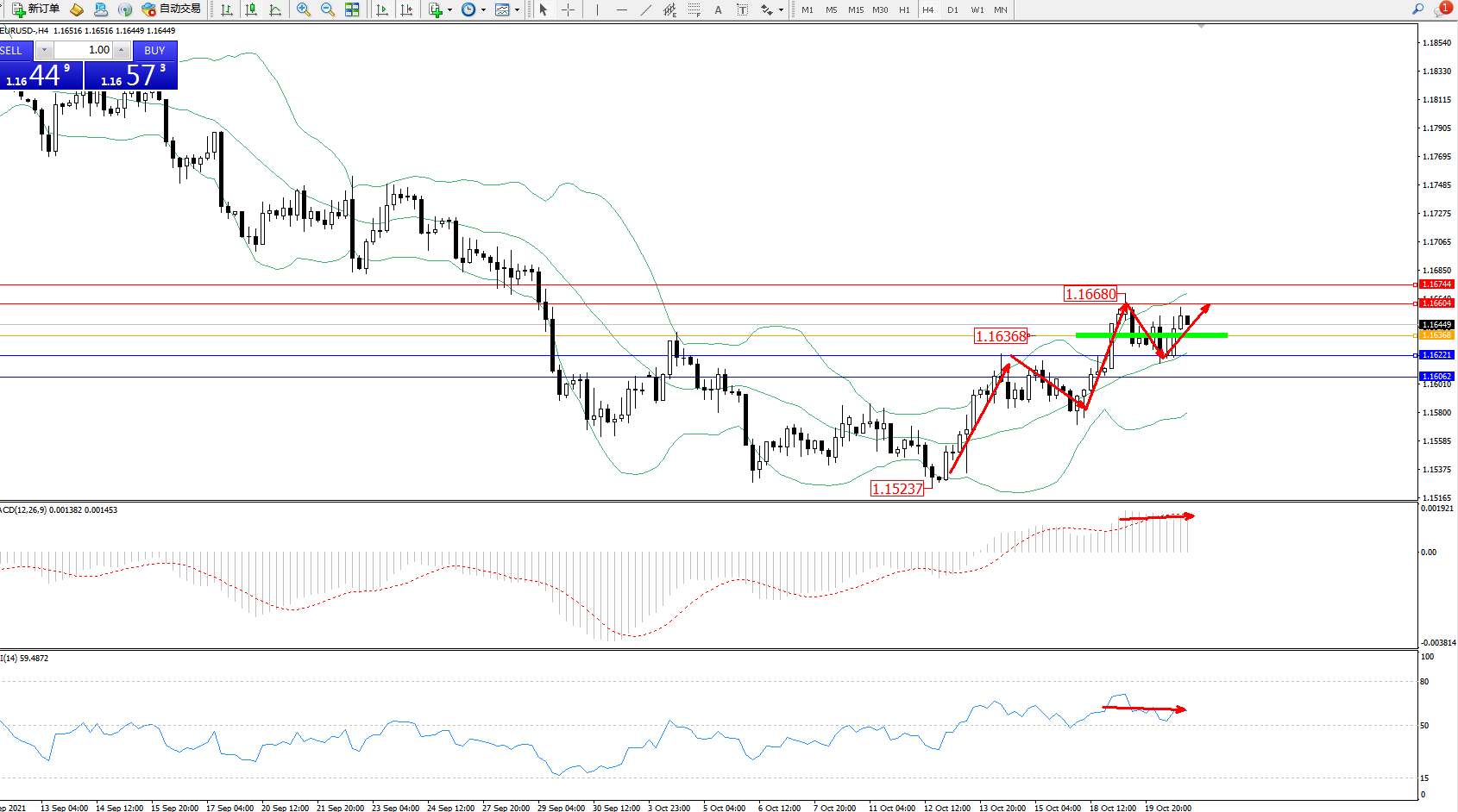 交易策略:1.16368上方看涨,目标1.16604、1.16744