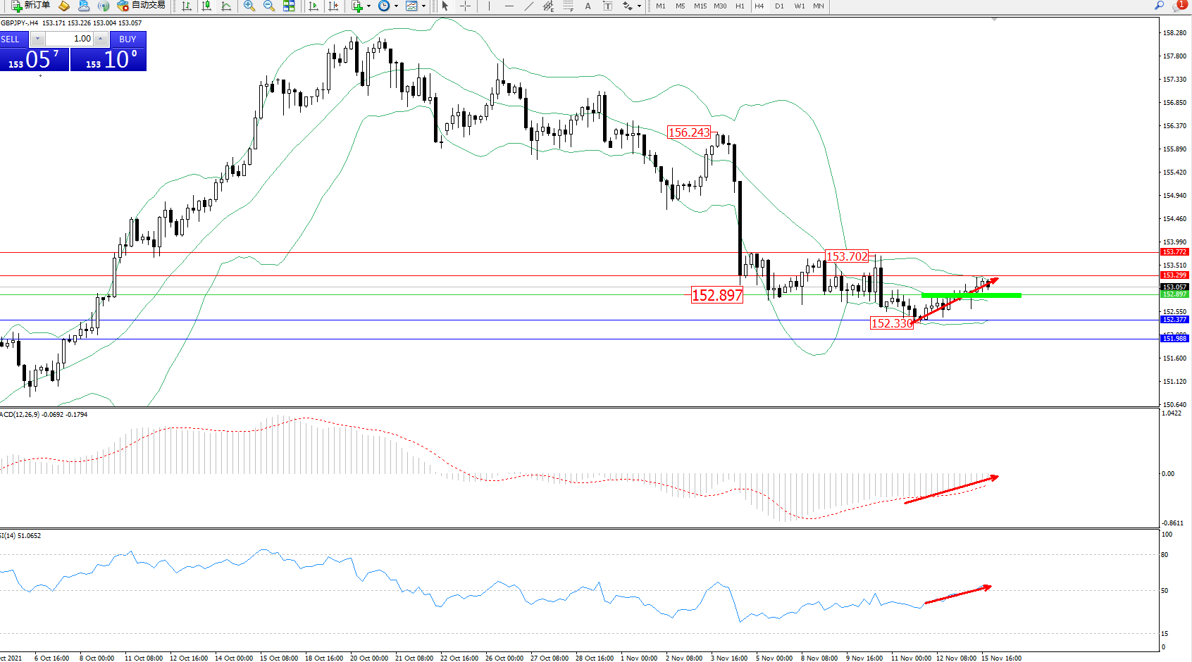 交易策略:152.897上方看涨,目标153.299、153.772