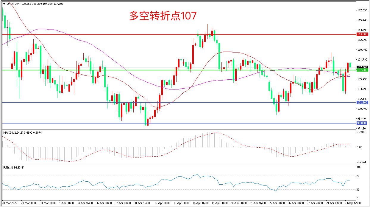 交易策略:在107.00之上看涨,目标113.00           120.00