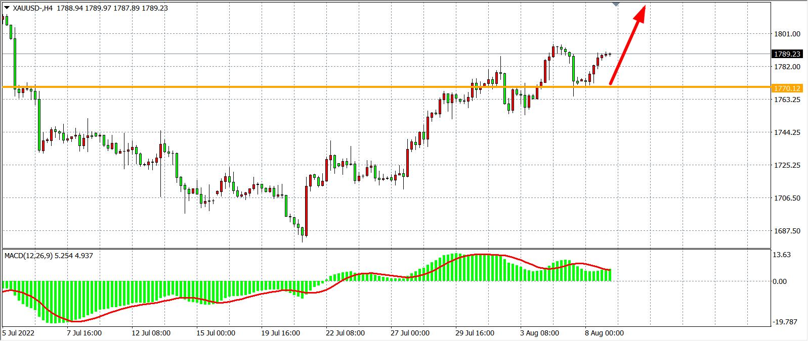 交易策略:在1770.00之上看涨,目标1800.00 1820.00